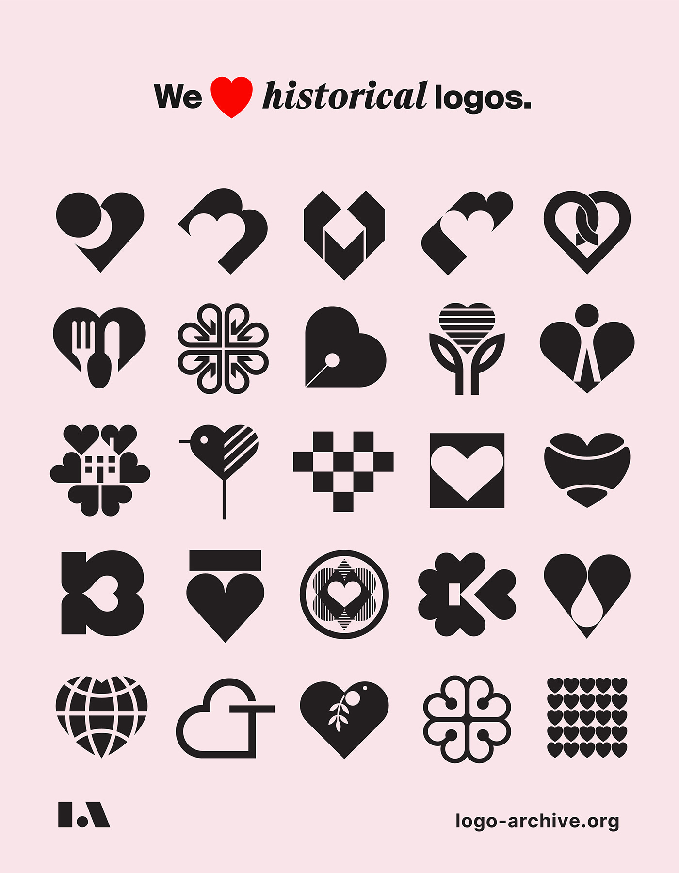 LogoArchive is the world’s largest online historical logo book with over 5000 examples, neatly categorised, and including heart logos.