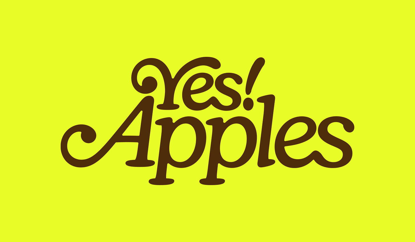 The wordmark is superbly flexible, and looks just as great as the full Yes! Apples wordmark as it does when truncated to ‘Yes!’ and contained within a simple apple-shaped frame.